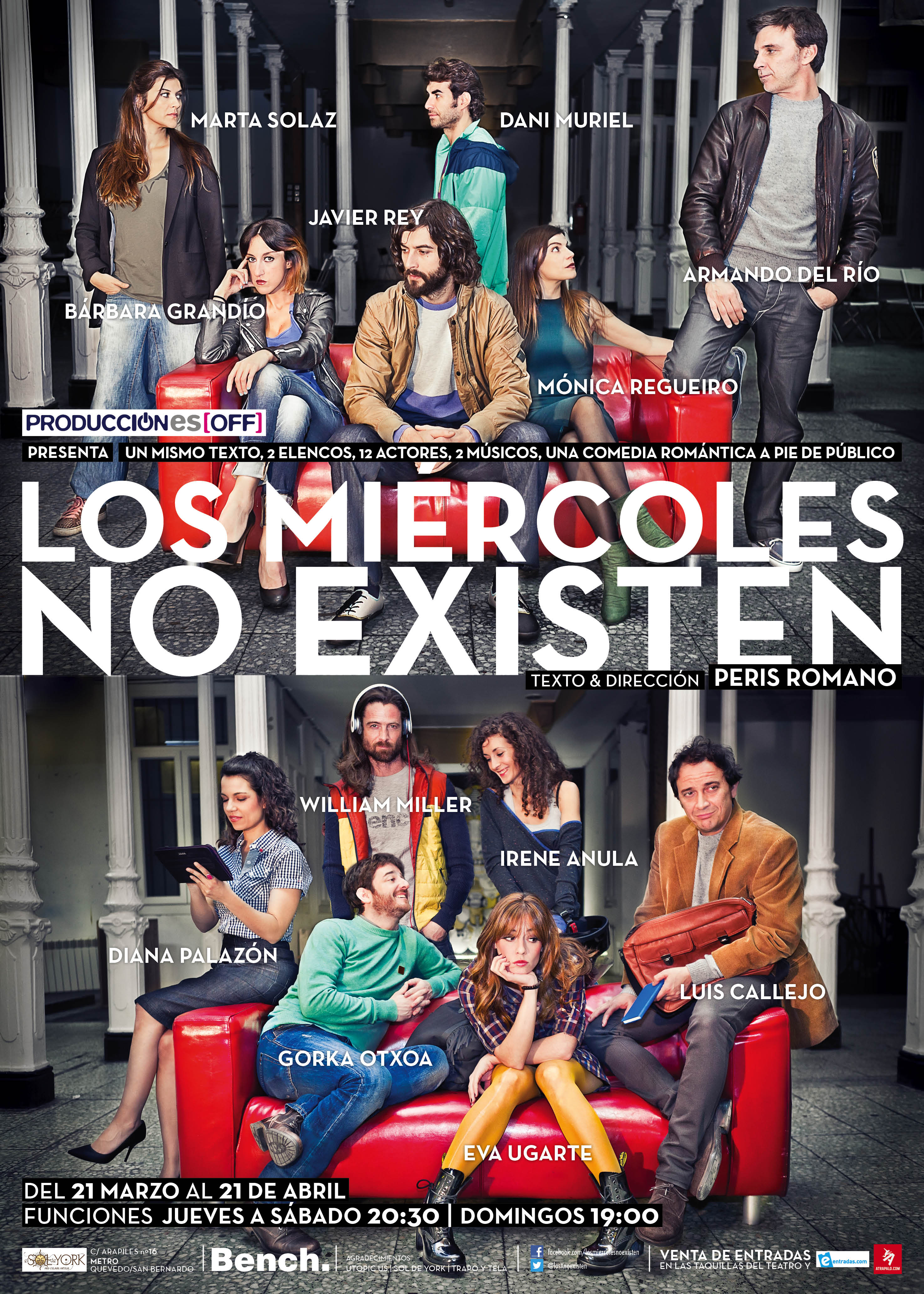 Los Miércoles no Existen es una increíble obra que llega dispuesta a arrasar en la cartelera teatral de Madrid, con un potente reparto nunca visto antes, de los que dan vértigo y unas increíbles ganas de invadir el teatro, en este caso El Sol de York.