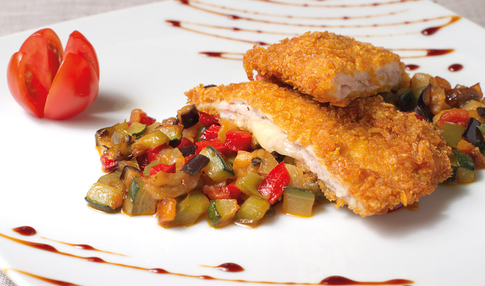 31-GOTERON CRUJIENTE DE LOMO SOBRE CAMA DE PISTO MANCHEGO