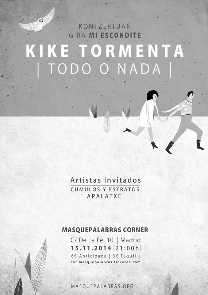 ESTHER ESTEBAN, MADRID Kike Tormenta presenta su nuevo trabajo «Mi Escondite» acompañado por Apalatxe y Cúmulos + Estratos.