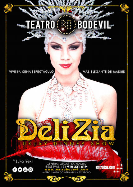 Desde El Cairo, pasando por Marrakech, Barcelona y después de recorrer las mejores ciudades del mundo, desembarca en Teatro Bodevil, Delizia. Con la intención de romper los moldes de las cenas espectáculo, la nueva apuesta de esta temporada te hará vivir una velada elegante y glamurosa donde nada es previsible. Disfruta de una cena de lujo, con las artes escénicas como protagonistas, y déjate sorprender.