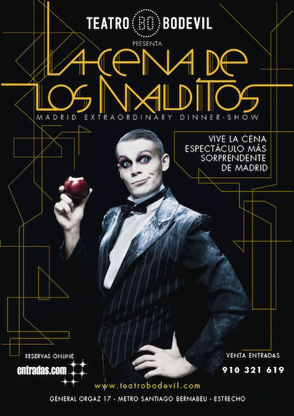 No es una cena, tampoco un espectáculo, es ambas cosas y ninguna al mismo tiempo. Es una experiencia sensitiva y emocional, donde el público no llega a vislumbrar el límite entre lo que ve y lo que saborea, entre lo que oye y lo que siente. En realidad, en el Teatro BoDevil, el espectador no es solo un espectador, es un comensal más, un invitado a participar en “La cena de los Malditos”, la nueva propuesta cultural y de ocio más innovadora y arriesgada de cuantas hayas visto.