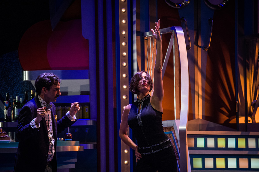 Primeramente lo que te sorprende al entrar al teatro es su llamativa y colorida escenografía, que dará mucho juego y resulta muy visual y perfecta para acompañar a los actores en sus interpretaciones y también en sus bailes.