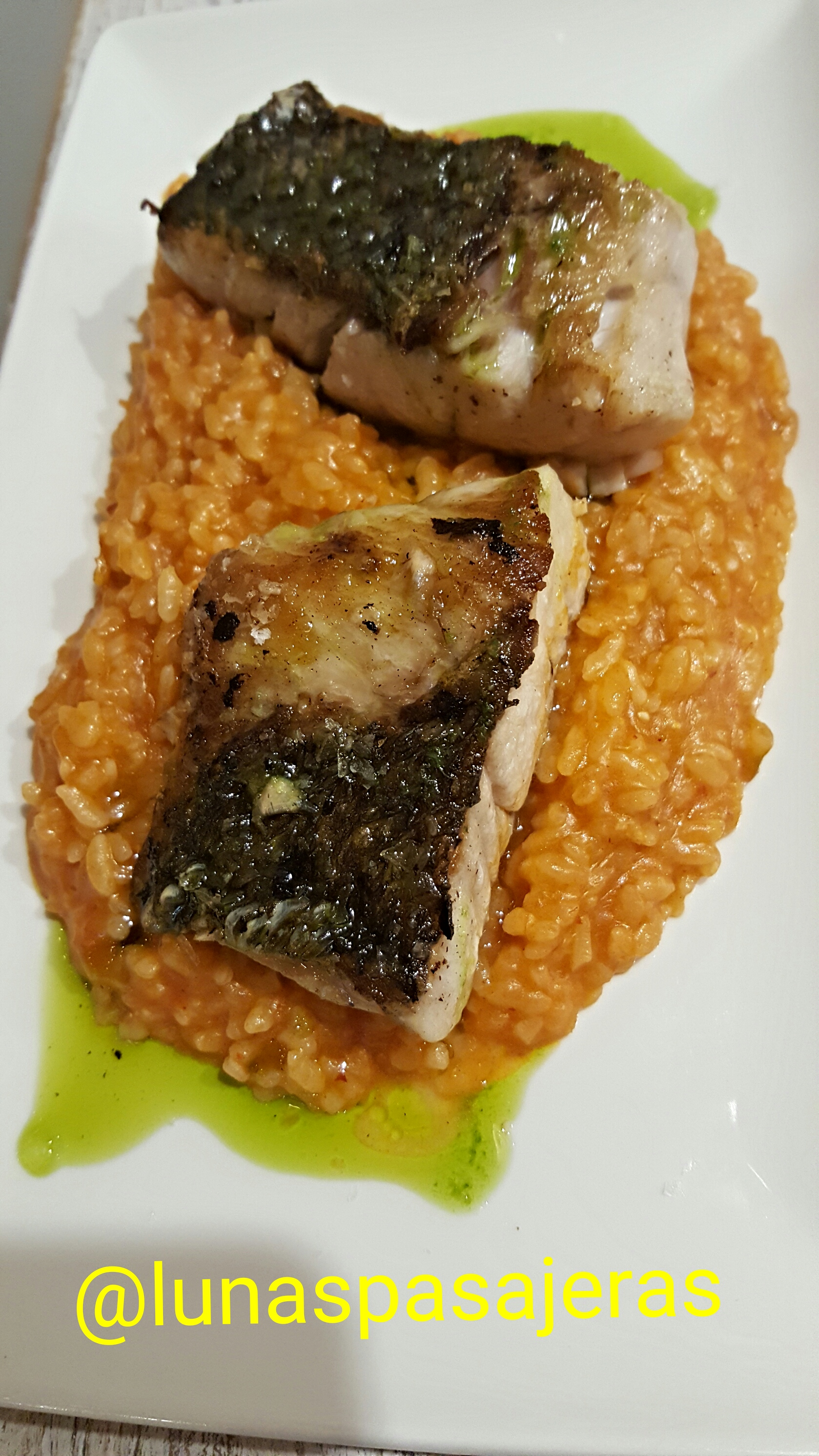 Después de este comienzo tan potente, fuimos a por el plato fuerte: Arroz meloso con lomos de corvina salvaje. Todo lo que os pueda decir será poco para poder describir este plato, ya que el arroz meloso estaba en su punto, suave y buenísimo, unido a la espectacular corvina, nada común de encontrar y la cuál os recomiendo que degusteis si tenéis la oportunidad. Sus lomos gorditos con su crujiente y salada al punto corteza superior fue el cierre perfecto, destacando también el rosa pálido de su carne.