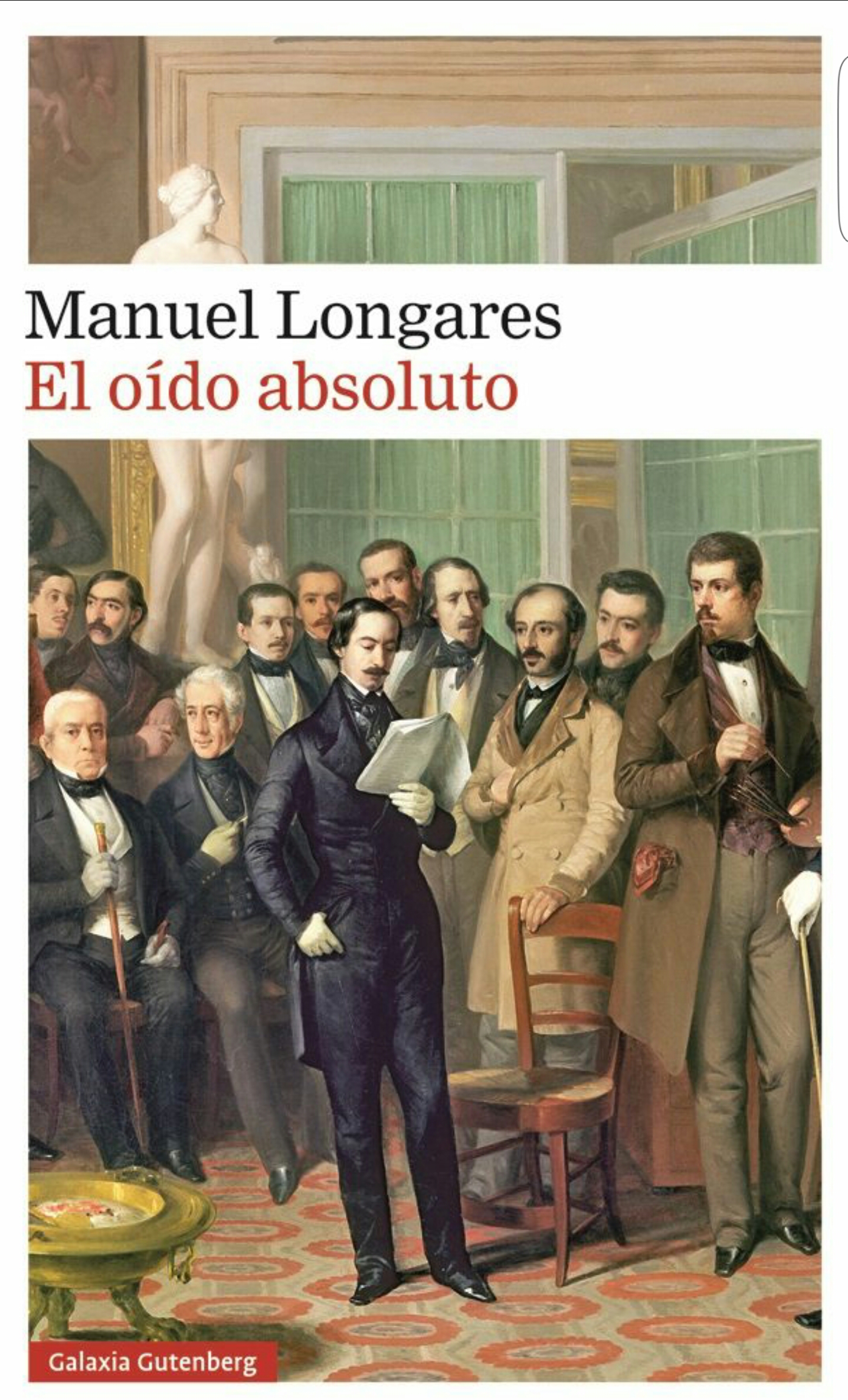 Ésta es una novela sobre la literatura. Sobre escritores y ágrafos, sobre el editor y el lector, sobre el estudioso y el discípulo, sobre las musas y los censores, sobre los mudos y los locuaces, sobre la bohemia y los manuscritos de memorias. Sobre la grandeza y la miseria de un oficio cuya recompensa reside en dedicarse a las palabras. Sucede en una época que abarca la parte central del siglo pasado, con su guerra civil y su posguerra. Gira en torno a un poeta de pueblo que en la capital convive con el triunfo, el destierro y la locura. Y la narración de la peripecia se apoya en versos y prosas de autores clásicos y contemporáneos y en fragmentos de zarzuela, revista musical y copla. El oído absoluto, octava novela de Manuel Longares, presenta un mundo heroico, desatinado y cruel. El desarrollo narrativo es muy divertido, con personajes sustancialmente extravagantes. Son los cultivadores del patrimonio literario que heredaron y que confiarán en bibliotecas a sus descendientes.