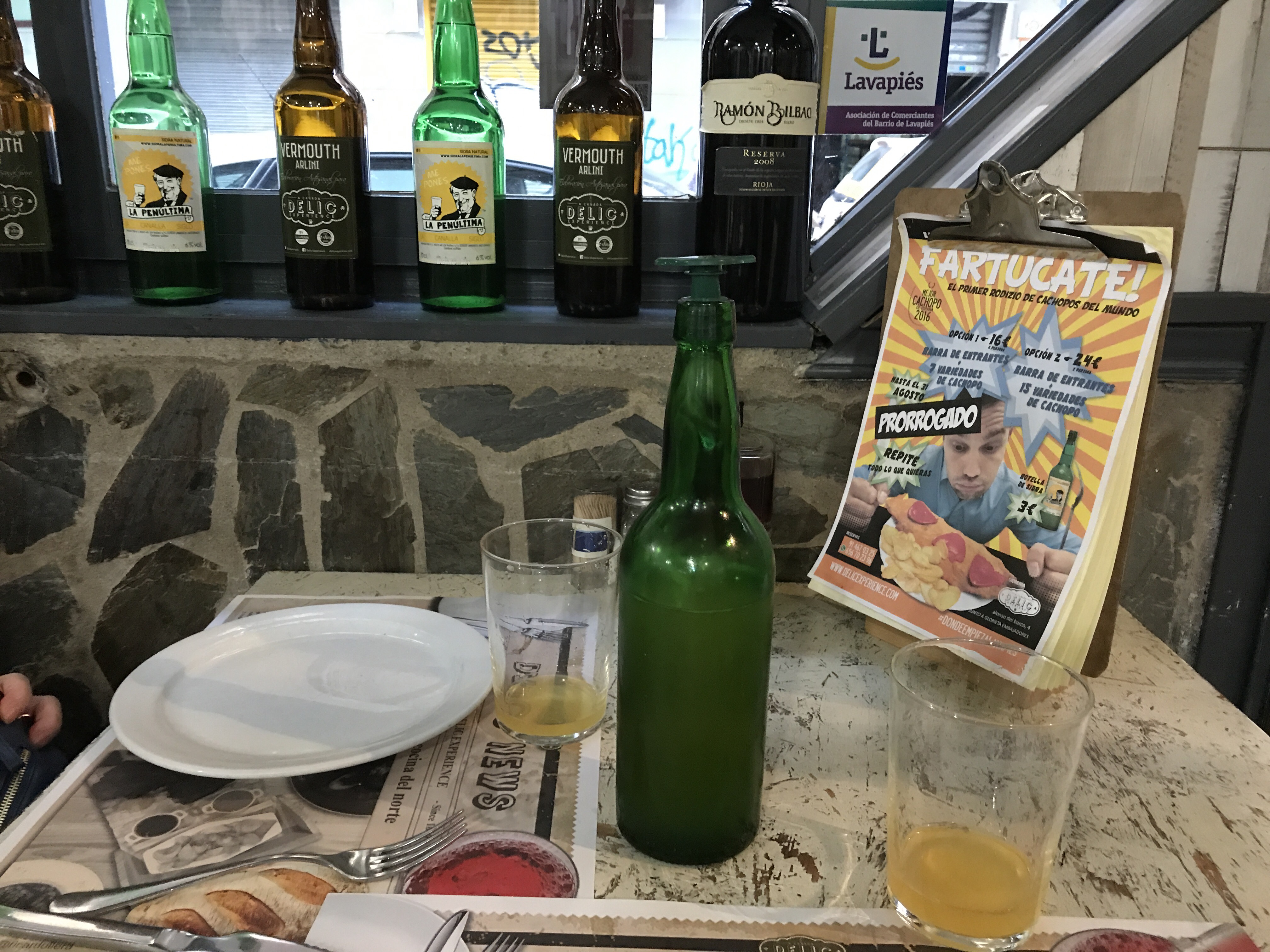 Seguimos con la estrella del restaurante y de la noche: la barra libre de Cachopos. La carta consta de quince especialidades pero nosotras solo probamos siete de ellas, a cada cuál mejor haciendo casi imposible escoger solamente uno. Si os vais a atrever a degustar la barra libre, intentad venir con hambre y con fuerza para poder probarlos y disfrutarlos como merecen, pues es una pena no poder probar la gran parte de ellos ya que todos tienen mucho que ofrecer. Toda la cena la acompañamos con una sidra deliciosa llamada Menéndez.