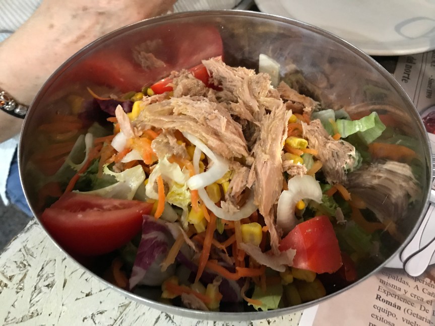 La ensalada sin duda es un gran acompañante que os recomendamos para complementar vuestra cena, ya que está sabrosa y con unos ingredientes que no defraudan como en otros sitios donde seguro que os habrá pasado que solo encontráis lechuga y más lechuga, pero aquí el bonito ya le da todo el encanto junto a los diferentes tipos de lechuga, maiz, tomate…