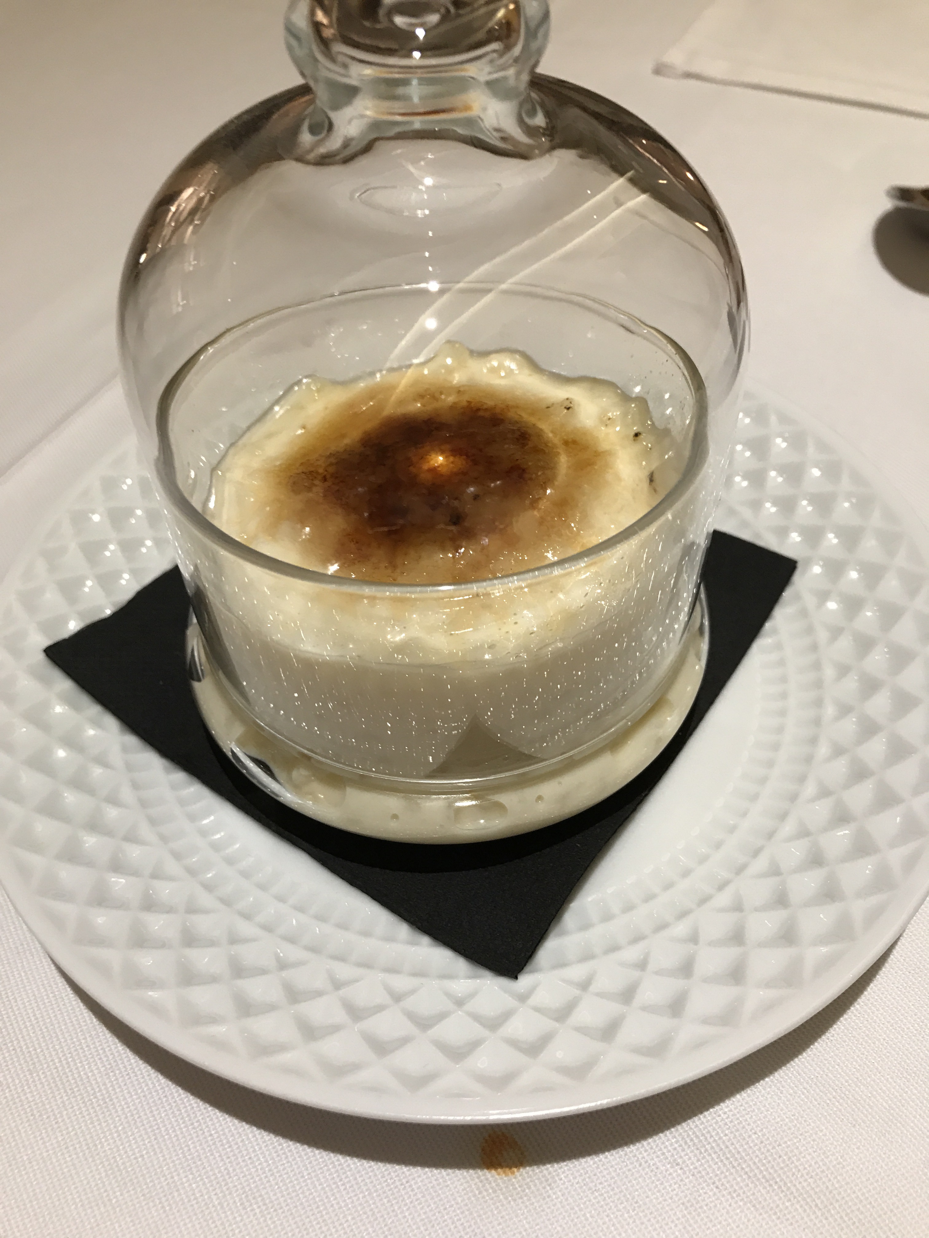 Una cena así no podía dejar de completarse con un delicioso arroz con leche casero presentado de una forma impactante y delicioso sin duda alguna, junto a un café con leche para acompañarlo debidamente.