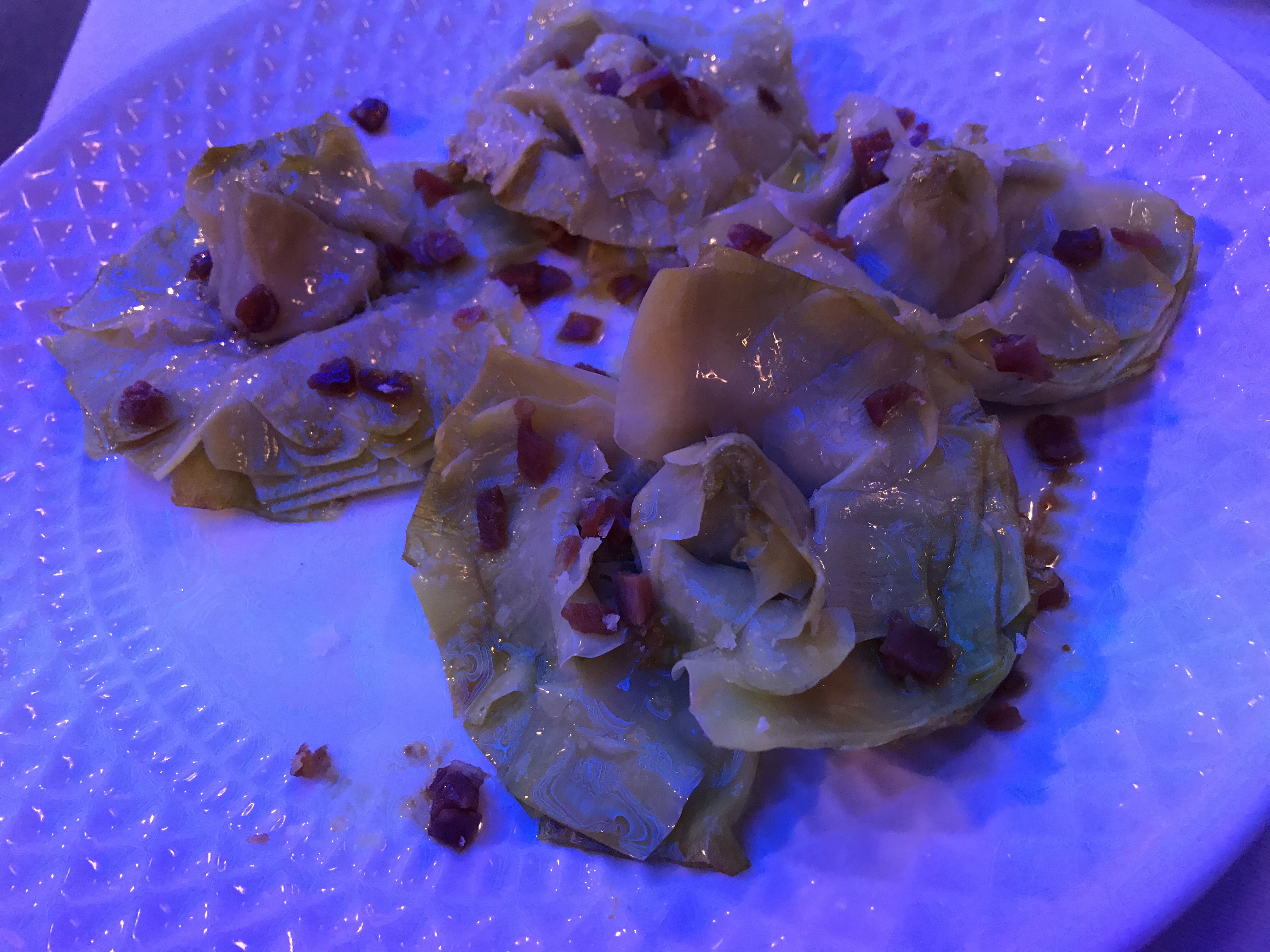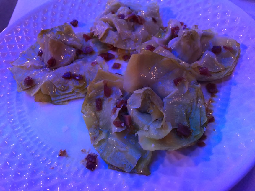 Seguimos con unas alcachofas con virutas de jamón ibérico y sal gorda que tenían un punto sabroso que se hacían agua en la boca y decoradas como rosas que fueron otra propuesta absolutamente deliciosa.