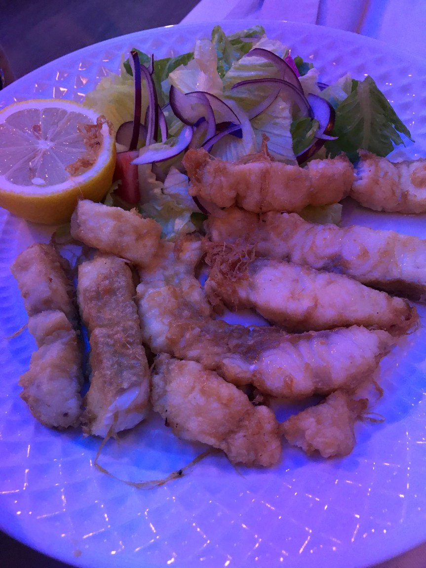 Terminamos con un cazón en adobo delicioso que enamoraba a primera vista y le otorgó a la cena el toque caliente y consistente que remató una cena espectacular.