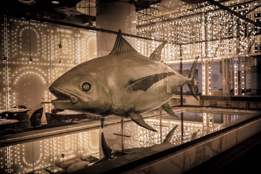 En BiBo Madrid las raíces andaluzas que sustentan la oferta culinaria están representadas en su arquitectura a través de una estructura con 7.000 bombillas que cubre sus paredes replicando, en clave de sofisticación, el alumbrado de la feria de Málaga. Mientras que el carácter viajero de la carta lo simboliza el gran globo aerostático que pende sobre la barra que está cubierta de esparto. Completan el espacio una gran escultura de un atún rojo, ingrediente fetiche del chef, y unas lámparas esféricas donde se proyectan sutiles imágenes en movimiento asemejándose al paso de las nubes que hacen alusión al lenguaje fantástico y mágico que caracteriza a los locales del Grupo Dani García.
