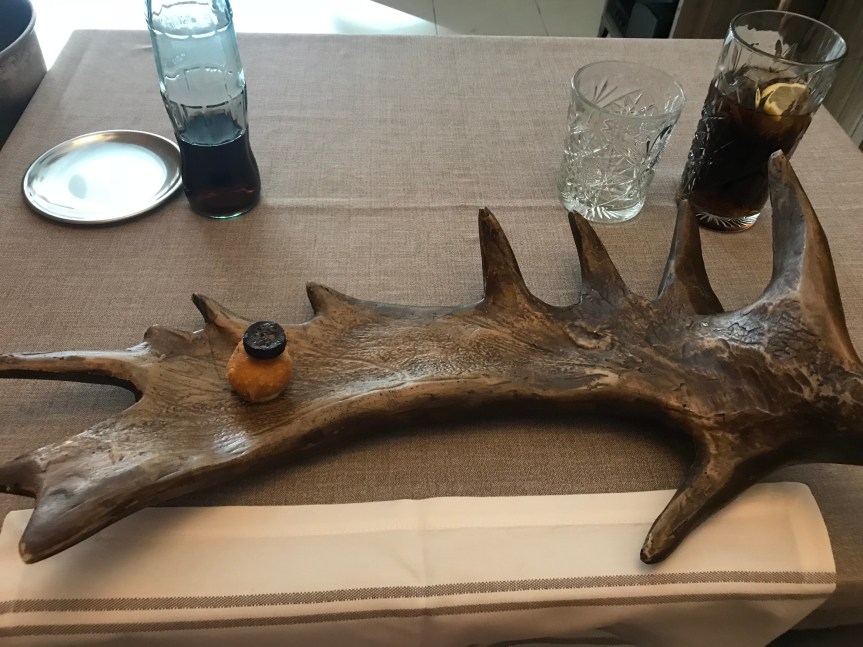 En mi aventura gastronómica pude comenzar con un detalle de la casa de un caldo con trufa y carne muy apetecible para ir abriendo apetito servido en una caja sorpresa que pude abrir, haciendo honor al restaurante, junto a un pan de broche en miniatura con morcilla, todo ello con una gran presentación.