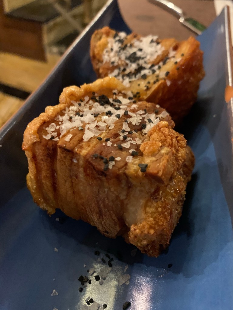 Finalizamos con una de las estrellas de la casa, dos torreznos crujientes y con un sabor muy delicado a la vez y perfecto para representar uno de los clásicos castizos.