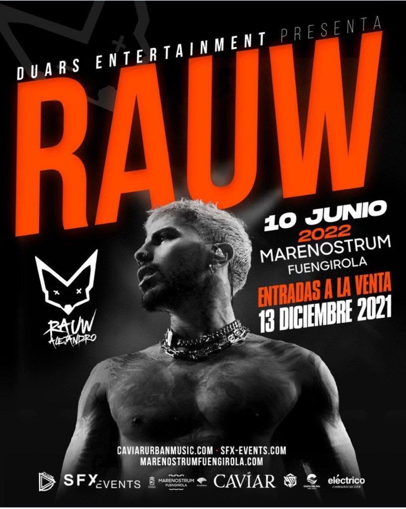 Rauw Alejandro, el artista más deseado del momento, aterrizará su gira mundial este verano en el recinto Marenostrum Fuengirola, en la que será una fecha exclusiva en Andalucía, el viernes 10 de junio. Las entradas de este concierto estarán disponibles a la venta el próximo lunes, 13 de diciembre, en www.marenostrumfuengirola.com.