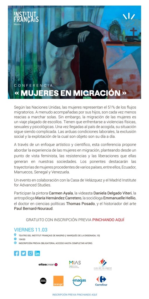 El Instituto Francés presenta la conferencia «Mujeres en Migración» Esther Soledad Esteban Castillo, Madrid Comparte esto: Compartir en X (Se abre en una ventana nueva) X Comparte en Facebook (Se abre en una ventana nueva) Facebook Me gusta Cargando...