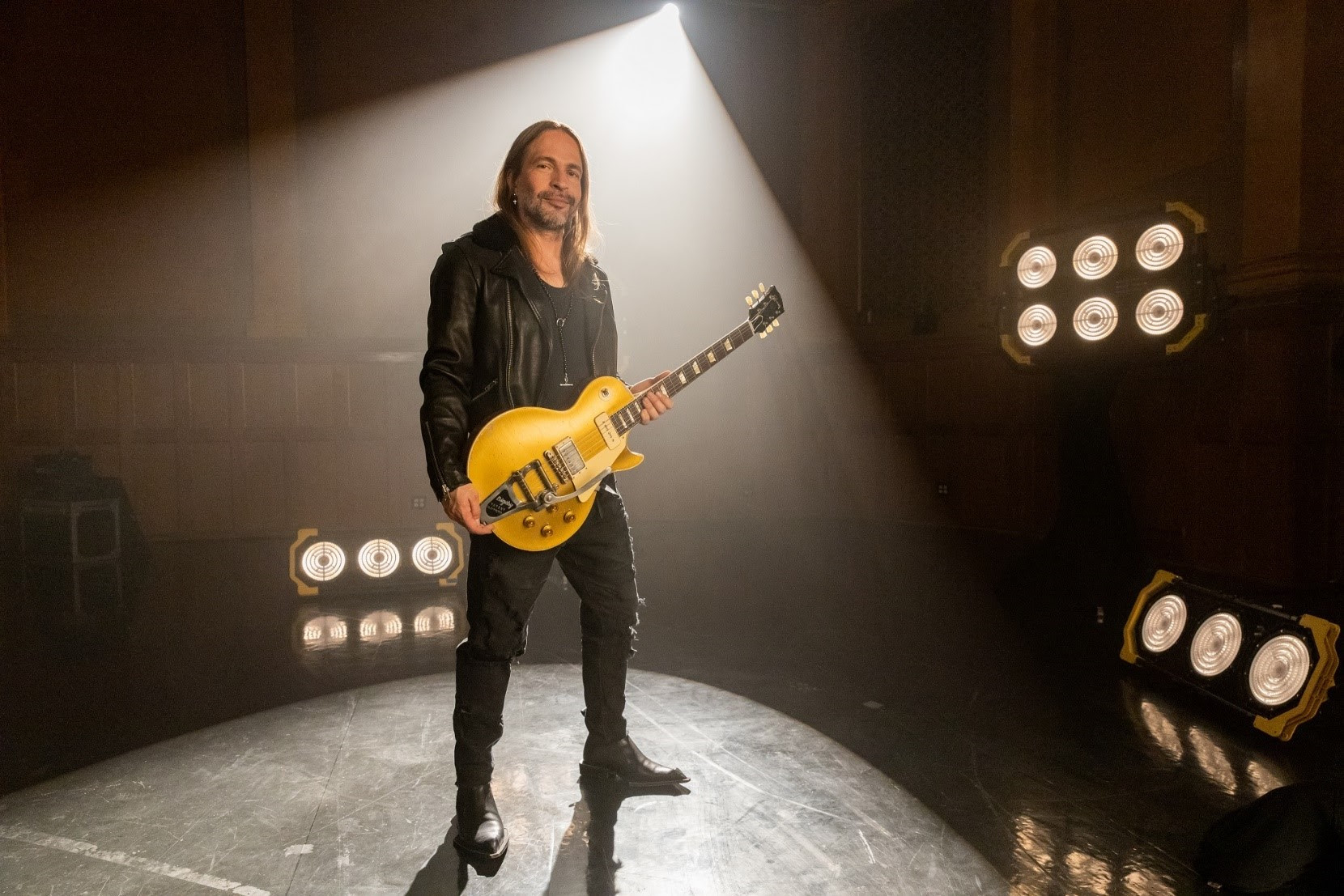 «Esta guitarra es el resultado de un esfuerzo de equipo. Está inspirada en una Les Paul de 1955 que tengo, y el equipo de Gibson trabajó duro para construir la mejor guitarra posible inspirada en mi propia guitarra», continúa Sergio. «Tiene un humbucker y una P-90, que multiplica el espectro sonoro. Tiene un Bigsby, que la convierte en una guitarra muy versátil. Es más ligera que una Les Paul de los 50, pero tiene mucha potencia”.
