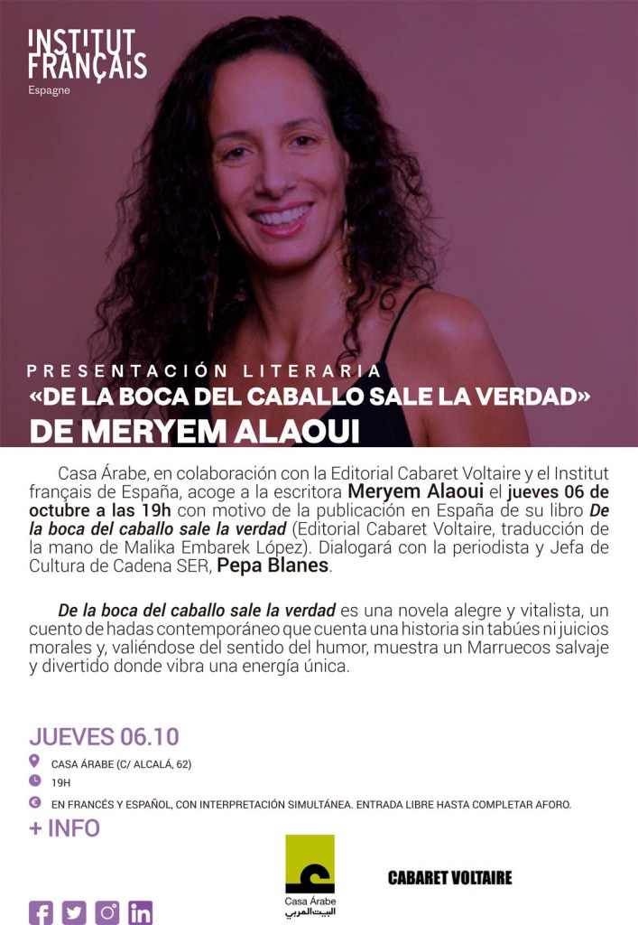Meryem Alaoui presenta “De la boca del caballo sale la verdad” en la Casa Árabe de Madrid Esther Soledad Esteban Castillo Comparte esto: Compartir en X (Se abre en una ventana nueva) X Comparte en Facebook (Se abre en una ventana nueva) Facebook Me gusta Cargando...