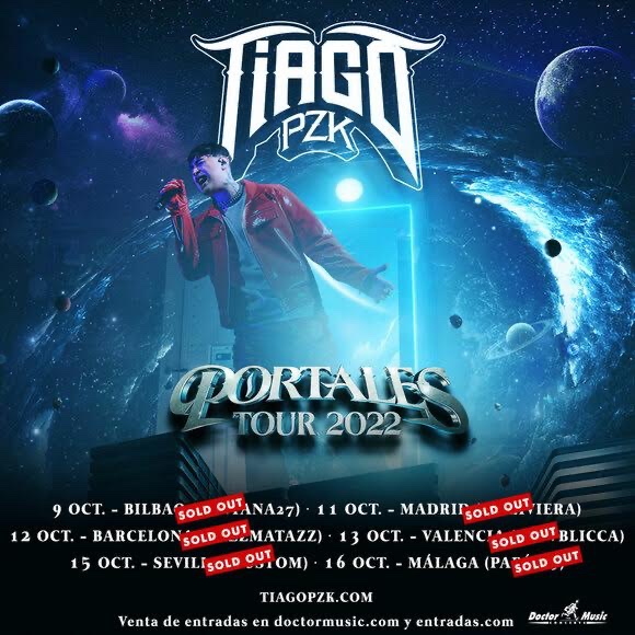 CON ‘PORTALES TOUR’Tiago PZK ha arrasado en su primera gira por España. ‘Portales Tour 2022′ daba comienzo el 9 de octubre en Bilbao y finalizaba este domingo en Málaga. En total han sido 6 fechas en nuestro país, con entradas agotadas en todas ellas. 10.000 personas han podido disfrutar en directo del argentino y su banda, en unos shows que no han dejado de sorprender.