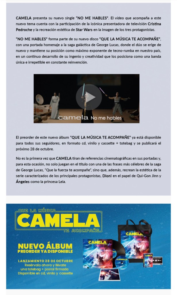 Camela presentan “No me hables” Esther Soledad Esteban Castillo Comparte esto: Haz clic para compartir en X (Se abre en una ventana nueva) X Haz clic para compartir en Facebook (Se abre en una ventana nueva) Facebook Me gusta Cargando...