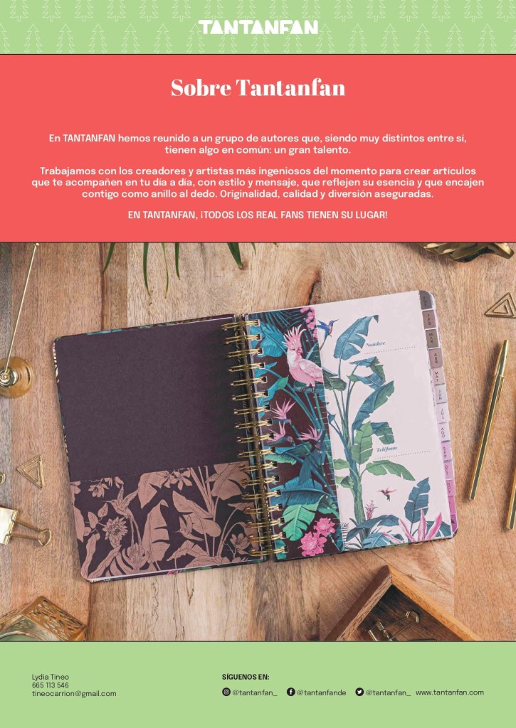 TANTANFAN es la marca creativa que se esconde tras las agendas más populares de este nuevo nicho de mercado, y el secreto de su éxito es apostar cada año por los artistas e ilustradores más exitosos del momento para diseñar agendas únicas, con toda la esencia de su creatividad, y a gusto de todos teniendo en cuenta el amplio abanico de opciones que se lanza en cada campaña.