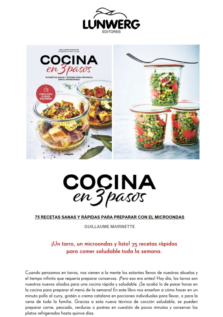 Descubre el nuevo libro gastronómico “Cocina en 3 pasos – 75 recetas sanas y rápidas para preparar con el microondas” Esther Soledad Esteban Castillo Comparte esto: Haz clic para compartir en X (Se abre en una ventana nueva) X Haz clic para compartir en Facebook (Se abre en una ventana nueva) Facebook Me gusta Cargando...