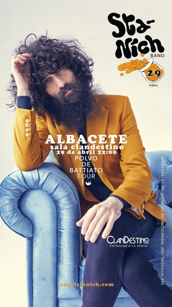 Un nuevo disco (sin olvidar el EP precedente, Una Visión Global Bastante Aproximada) que Stanich y su BAND funden en directo con todo su repertorio, en perfecta aleación, y que vuelve a estar de gira esta primavera/verano: Polvo de BattiatoTour. Por el momento, éstas son las fechas confirmadas (incluidas las últimas invernales) que les conducirán a las nobles poblaciones de: