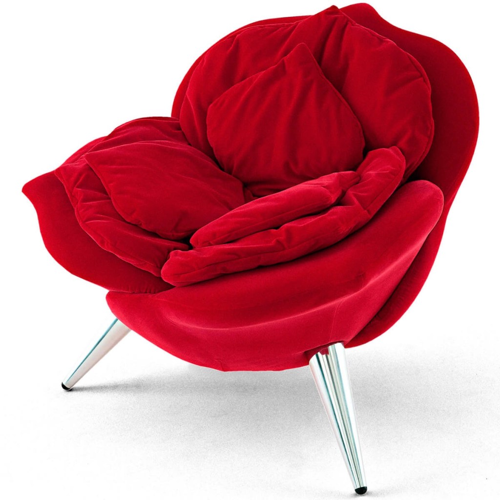 Diseñada por Masanori Umeda, la silla Rose Chair de Edra con forma de rosa, como su propio nombre indica, puede ser vista como un elemento de alta costura. Los pétalos, que forman el relleno y hacen de asiento, dan la bienvenida y están hechos a mano uno por uno. El marco es de metal moldeado con pequeñas piezas de madera con forma; el relleno es de espuma de poliuretano y Dacron. Las patas son de aluminio torneado y cepillado con un acabado de revestimiento de secado al horno transparente. La tapicería es de terciopelo y está disponible en los colores de la colección de tejidos de Edra. Detalles: Consulte precio y más información en Shelum Bautista.