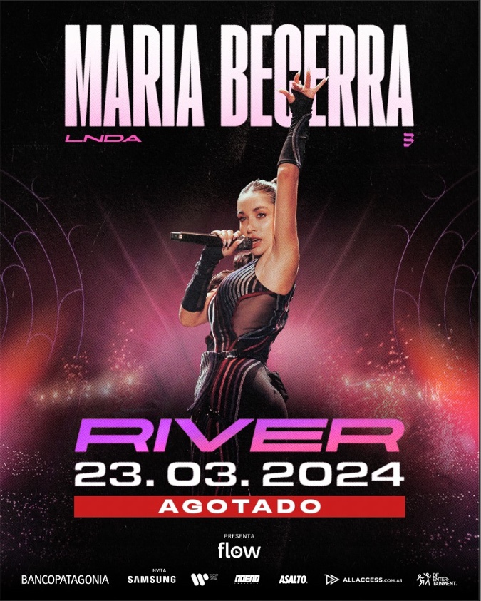 Con dos discos en su haber que acumulan más de 500 millones reproducciones, más de30 millones de seguidores en sus redes sociales y más de 25 millones de oyentes en Spotify, Maria Becerra consolida su consagración con este megashow en River, el cual resume poderosamente el trabajo y la perseverancia de una chica que comenzó haciendo videos por Youtube y no paró: sacó álbumes que rompieron récords mundiales, recibió innumerables reconocimientos internacionales, fue de las primeras artistas argentinas mujeres en colaborar con íconos legendarios de la música global y su proyección internacional no tiene frenos: caracterizada por su humildad y su conexión tan genuina con sus fans, el 23 de marzo de 2024, Argentina estarán celebrando junto a ella su concierto consagratorio.