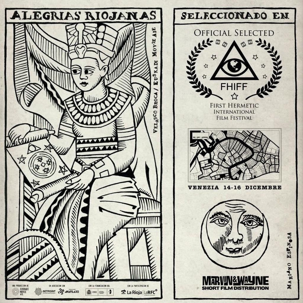 El cortometraje ALEGRÍAS RIOJANAS de Velasco Broca compite esta semana en la VII edición del First Hermetic International Film Festival (también denominado Festival de Cine Esotérico y Oculto de Italia), que se celebra entre este jueves 14 y el sábado 16 en Venecia.