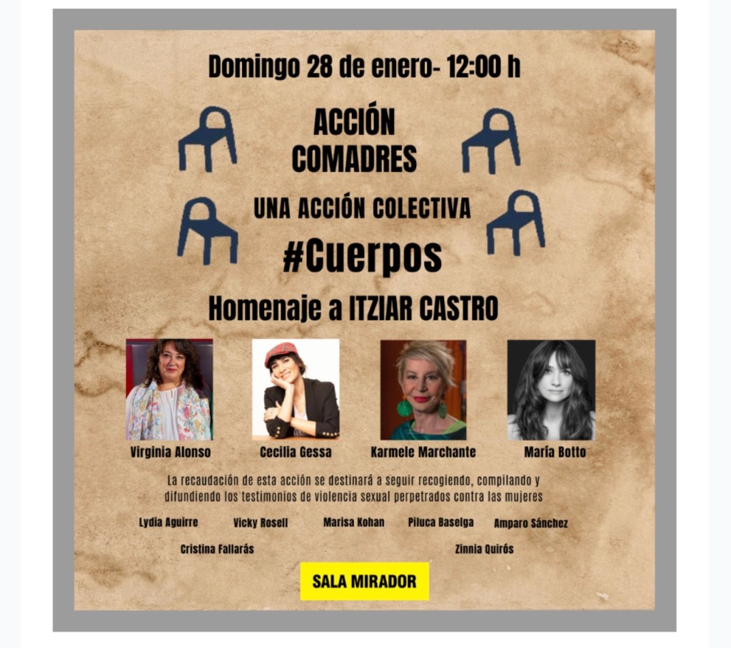 La compañía teatro político feminista ACCIÓN COMADRES presenta en Madrid el próximo domingo 28 de enero su particular homenaje a la actriz y activista ITZIAR CASTRO, fallecida el pasado 8 de diciembre a los 46 años.