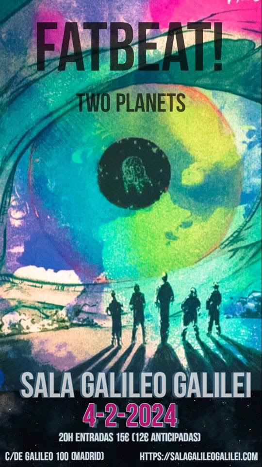 - El día 4 de febrero a las 20hrs, en la Sala Galileo de Madrid, es la fecha elegida por FATBEAT! Para presentar la primera parte de su último proyecto artístico y discográfico: una trilogía llamada TWO PLANETS que incluye 3 vinilos, con sus tres cómics correspondientes entorno a un relato de ciencia ficción guionizado por ellos con la colaboración del dibujante Ivan Mejias (Los asesinos del cómic).