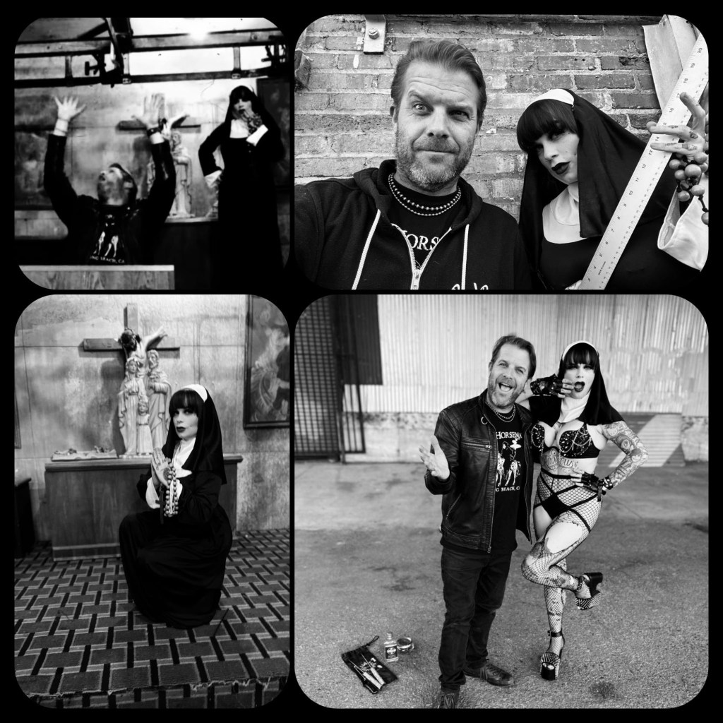 Me pareció hilarante y muy irónico. Así que líricamente, la canción trata sobre una monja atractiva con la que tengo relaciones en medio de la iglesia frente a todos. Por supuesto, nada parecido ocurrió en la realidad, pero me pareció divertido y atrevido. Por lo tanto, cuando hicimos el videoclip, contacté a una bailarina de burlesque (Marilyn Jane) que conozco y que además es lanzallamas. La vestí como una monja sexy y nos divertimos mucho.