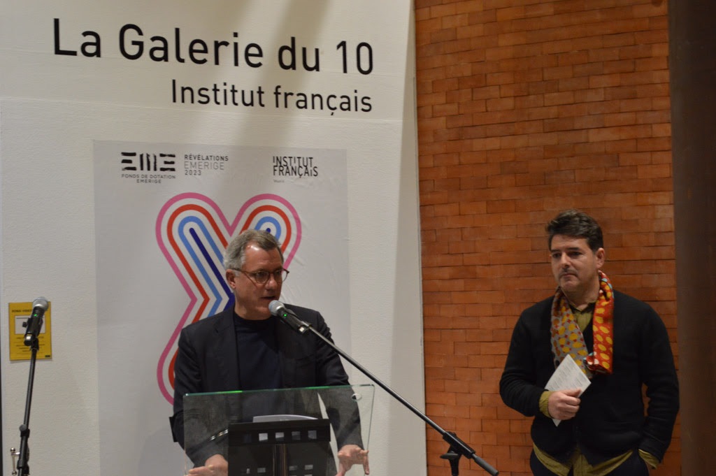 A continuación, Laurent Dumas, fundador y Presidente del Consejo de vigilancia del grupo inmobiliario Emerige, creador de la Beca Révélations Emerige tomó la palabra, destacando la relevancia de las obras premiadas. Recordó que «en 2014, se creó la Beca Révélations Emerige para acompañar a los jóvenes artistas de la escena francesa, dar a conocer y que se reconociera el talento de los artistas, y fomentar al máximo su difusión«.