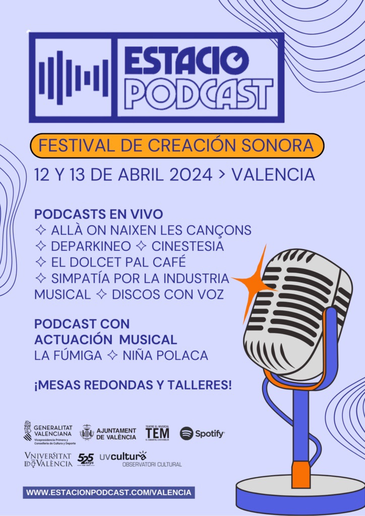 El festival Estació Podcast cuenta con el apoyo de la Generalitat Valenciana, el Ajuntament de València, el Teatre El Musical (TEM), Spotify, la Universitat de València y el Observatori Cultural UV Cultura.