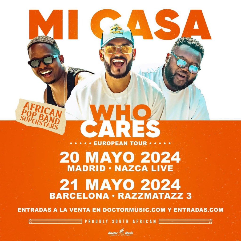 Tras una impresionante década de éxitos, giras en directo con entradas agotadas y apariciones en los mayores festivales, así como multitud de premios certificados de oro y platino, Mi Casa, uno de los tríos de pop más populares y exitosos de Sudáfrica, continúa ahora el siguiente capítulo de su increíble historia como banda: ¡su vuelta a Europa!