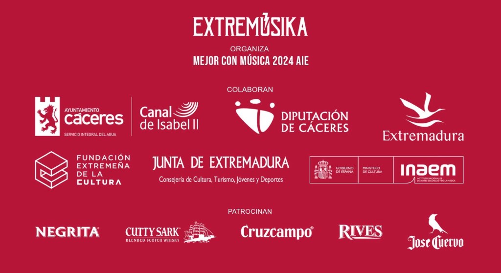 COLABORAN: Ayuntamiento de Cáceres, Canal de Isabel II, Diputación de Cáceres, Marca Extremadura, Fundación Extremeña de la Cultura, Junta de Extremadura.Consejería de Cultura, Turismo, Jóvenes y Deportes, Inaem.PATROCINAN: Negrita, Cutty Sark, Cruzcampo, Rives, José Cuervo