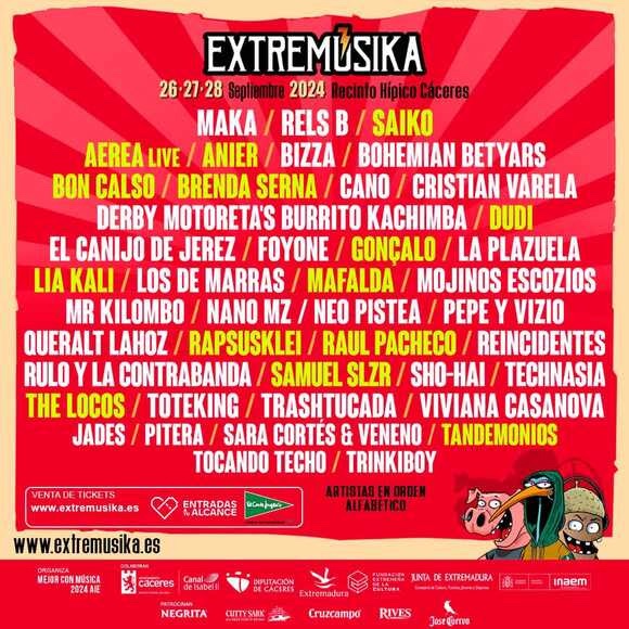 El festival musical referente en la comunidad extremeña, EXTREMÚSIKA que se celebrará los días 26, 27 y 28 de septiembre de 2024 en el Recinto Hípico de Cáceres, continúa con los avances en su cartel artístico y hoy suma un tercer headliner de lo más potente, SAIKO, la última sensación urbana que ya es una estrella mundial.