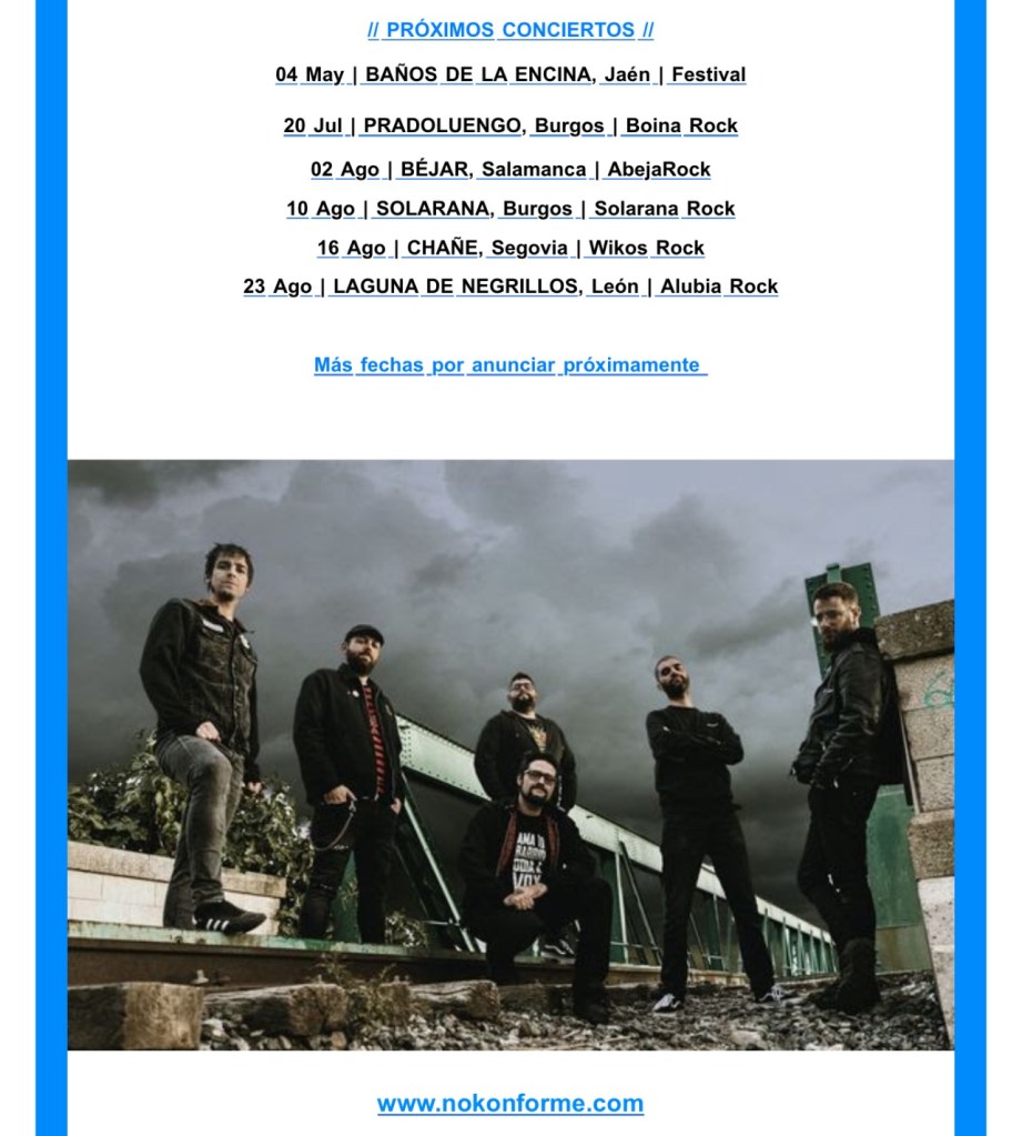 No Konforme presentan «Nuestra Guerra«, primer single de estudio tras finalizar la gira de su cuarto disco «De Cada Idea un Huracán» (2022). Después de poner punto y final a la gira de su cuarto trabajo discográfico y tras dos años de exitosa gira recorriendo gran parte del estado español estando presentes en grandes festivales y salas de su geografía, No Konforme se embarcan en una nueva aventura sónica que les llevará por el camino del lanzamiento de diferentes singles.