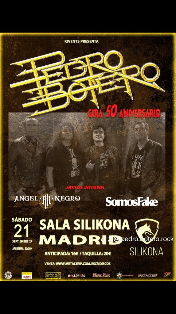 El 21 de septiembre Pedro Botero en su gira de 50 aniversario con Angel Negro y Somosfake en Madrid, en la Sala Silikona.