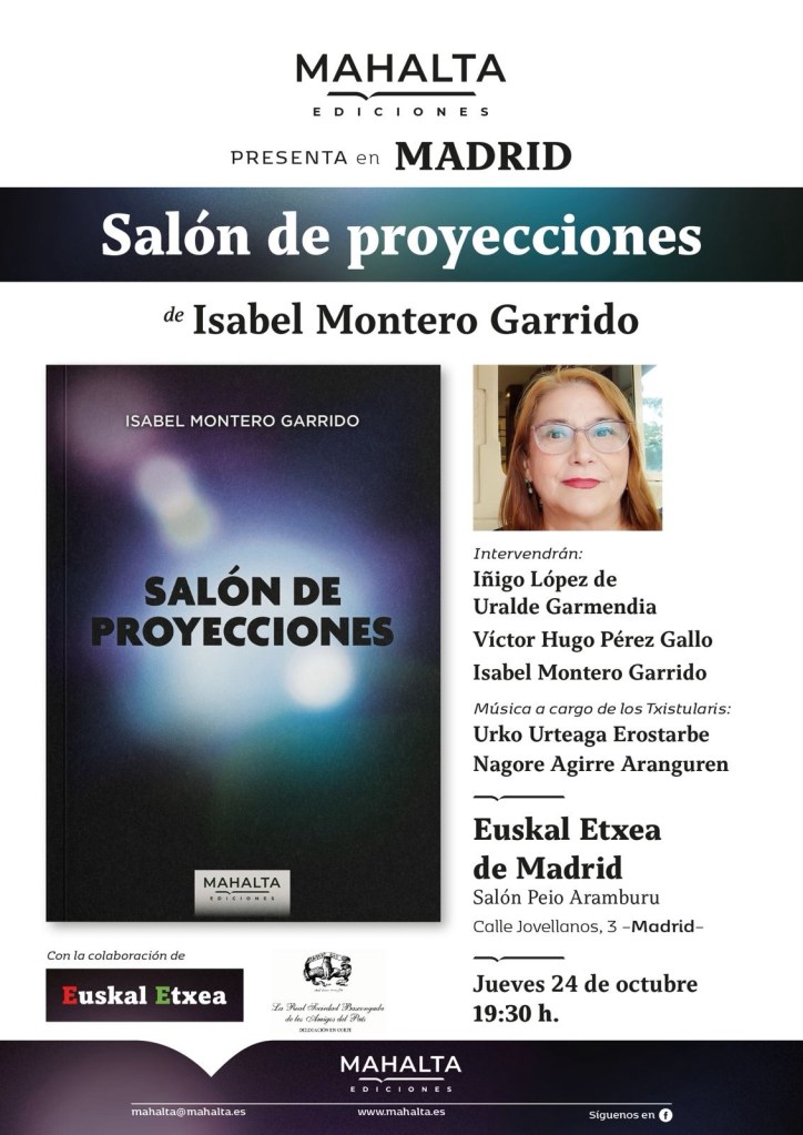 “Salón de Proyecciones” es un libro de relatos escritos a lo largo del tiempo. Si bien Isabel no pretende un hilo conductor entre unos y otros, ese hilo invisible existe. Es el resultado de un “asombro” en la mirada lo que me permite retratar diferentes aspectos y situaciones que acontecen a los seres humanos.