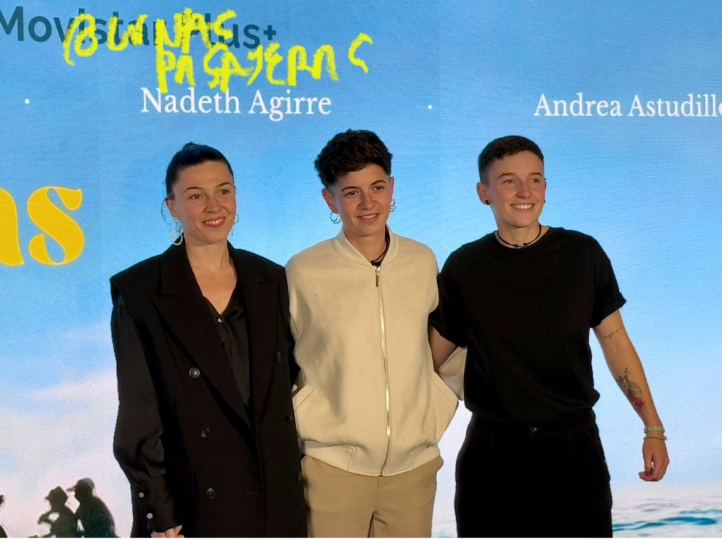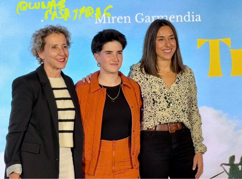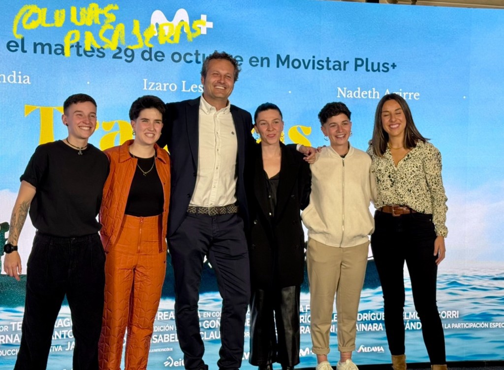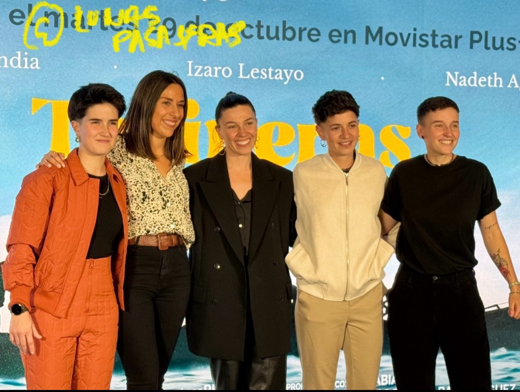 A la presentación acudieron las cinco protagonistas, Nerea Pérez, Miren Garmendia, Izaro Lestayo, Nadeth Agirre, Andrea Astudillo, el director de ‘Traineras’, Telmo Iragorri y los productores Isabel Delclaux y Javier Mendoza.