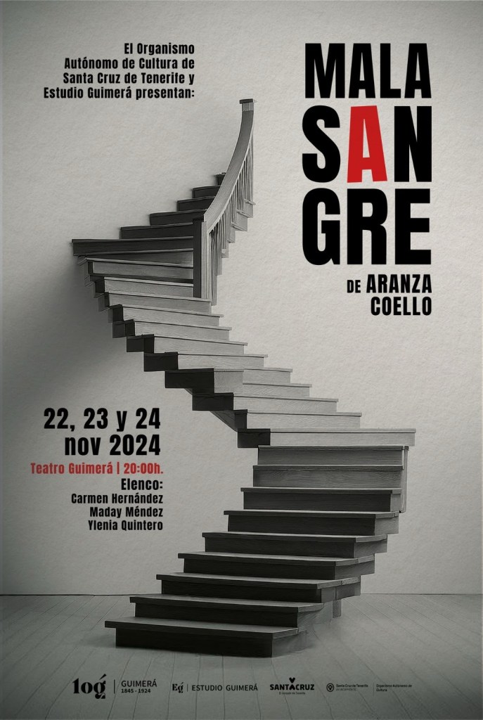 El Organismo Autónomo de Cultura de Santa Cruz de Tenerife y Estudio Guimerá presentan “Mala sangre”, una obra escénica original, escrita y dirigida por la actriz y dramaturga canaria Aranza Coello, en torno al 130 aniversario del estreno de «Maria Rosa» en 1.894.