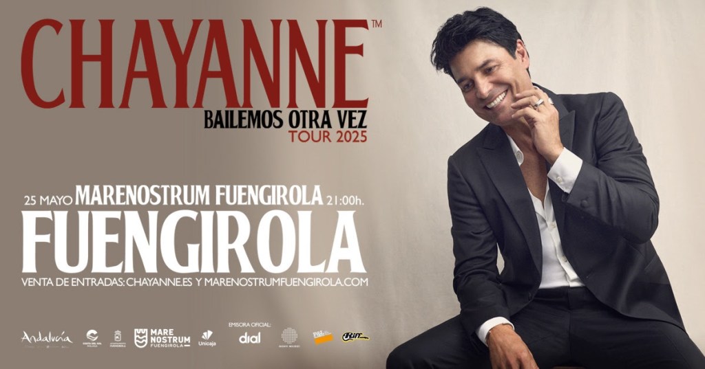 El puertorriqueño Chayanne traerá todos sus éxitos al recinto fuengiroleño por primera vez, catorce años después de haber actuado en la provincia, para hacer vibrar a todos los fans con su gira ‘Bailemos Otra Vez’, el próximo 25 de mayo de 2025. Un concierto donde el público podrá cantar y bailar sus himnos musicales como ‘Lo dejaría todo’, ‘Y tú te vas’, ‘Un siglo sin ti’, o su último éxito ‘Bailando Bachata’, entre muchas otras.