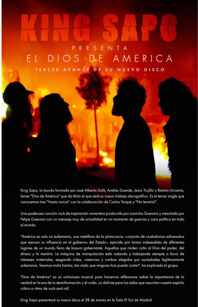 King Sapo presentan “El Dios de América” Esther Soledad Esteban Castillo Comparte esto: Haz clic para compartir en X (Se abre en una ventana nueva) X Haz clic para compartir en Facebook (Se abre en una ventana nueva) Facebook Me gusta Cargando...