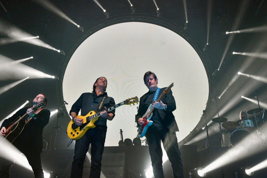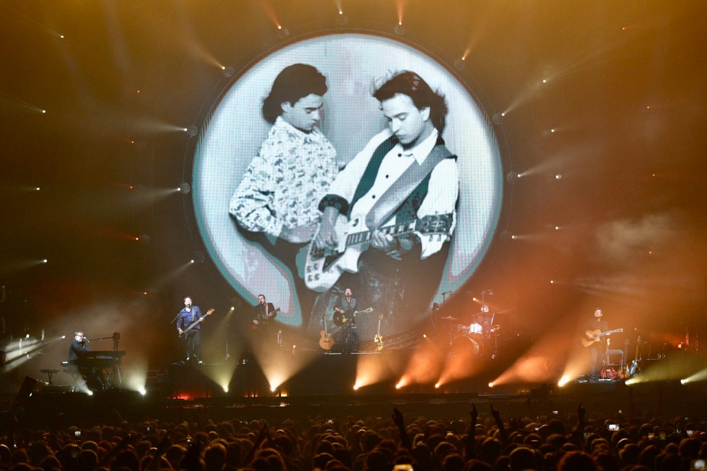 El concierto empezó con imágenes que mezclaban el presente y el pasado del grupo, proyectadas sobre una gran pantalla redonda dando la introducción al concierto.