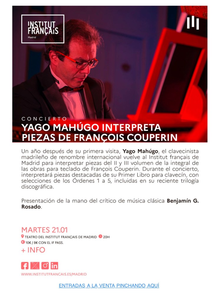 Yago Mahúgo llega al Institut Français de Madrid Esther Soledad Esteban Castillo Comparte esto: Haz clic para compartir en X (Se abre en una ventana nueva) X Haz clic para compartir en Facebook (Se abre en una ventana nueva) Facebook Me gusta Cargando...