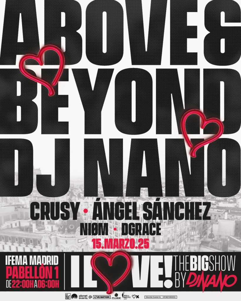 I Love! The Big Show by DJ Nano, conocida como “la fiesta más bonita del mundo”, fusiona géneros como el trance, el techno y el melodic techno, combinando los clásicos con los sonidos más actuales, siempre con un enfoque en la calidad y la innovación.
