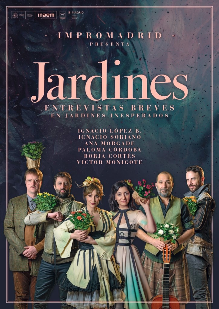 A partir de cinco entrevistas a cinco personas del público asistente, los personajes de «Jardines» crearán cinco escenas improvisadas sobre: el amor, el tiempo, el miedo, los recuerdos y el presente»