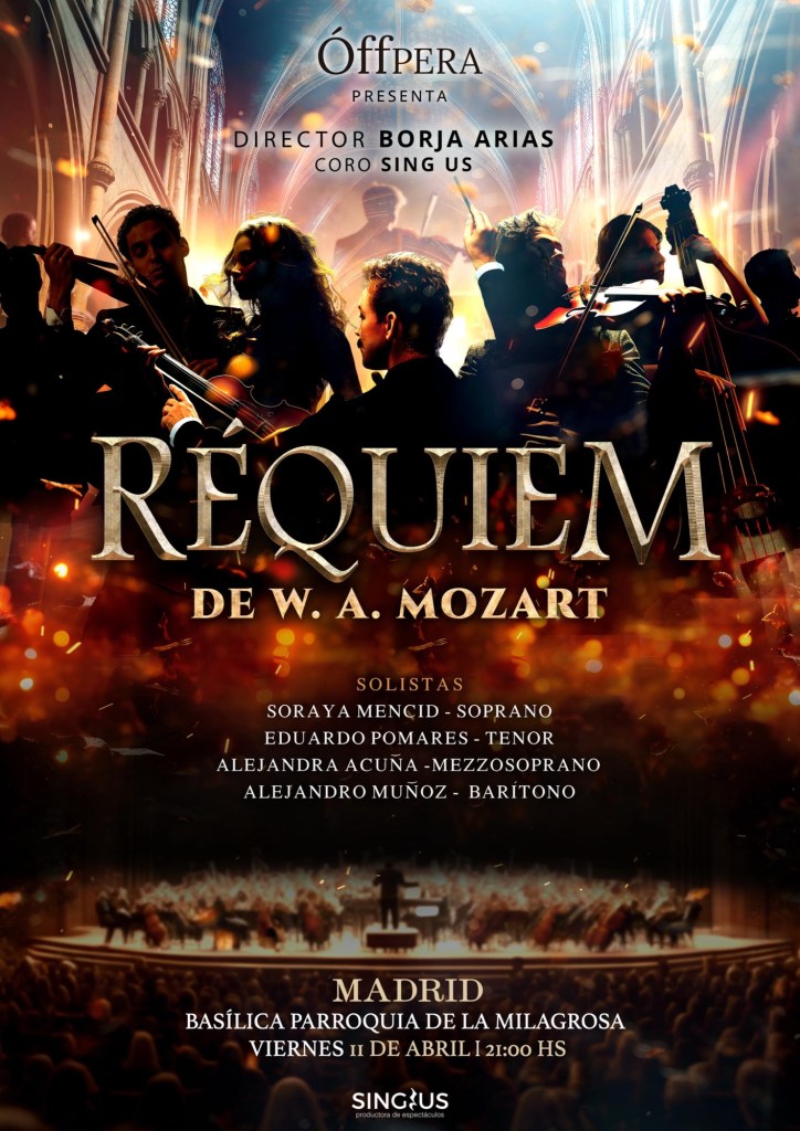 Singus, que cosechó un gran éxito con el Requiem de Mozart con sucesivos «no hay localidades» en 2024, vuelve el 11 de abril a las 21h bajo la dirección de Borja Arias con la participación de Soraya Mencid (soprano), Eduardo Pomares (tenor), Alejandra Acuña (mezzosoprano) y Alejandro Muñoz (barítono). Estarán acompañados por el coro SINGUS.Las entradas ya están a la venta.