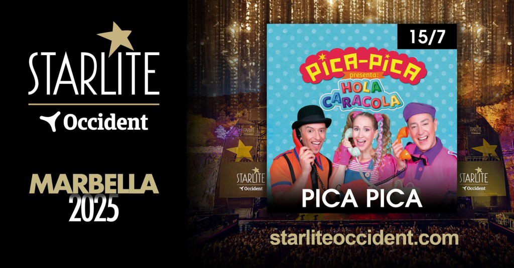 El martes 15 de julio, el grupo infantil PICA PICA presentará en Starlite Occident su nuevo espectáculo: “¡Hola Caracola!”. Un musical infantil lúdico e interactivo donde niños y grandes se divertirán cantando y bailando. En esta ocasión, nuestros amigos realizan un recorrido por sus canciones más emblemáticas, El Baile De La Fruta, La Taza, Picapower…, sin dejar de cantar algunos de sus nuevos temas infantiles. Con Belén, Nacho y Emi, los más pequeños podrán descubrir y aprender juegos infantiles y canciones. PICAPICA es… ¡Diversión en familia!