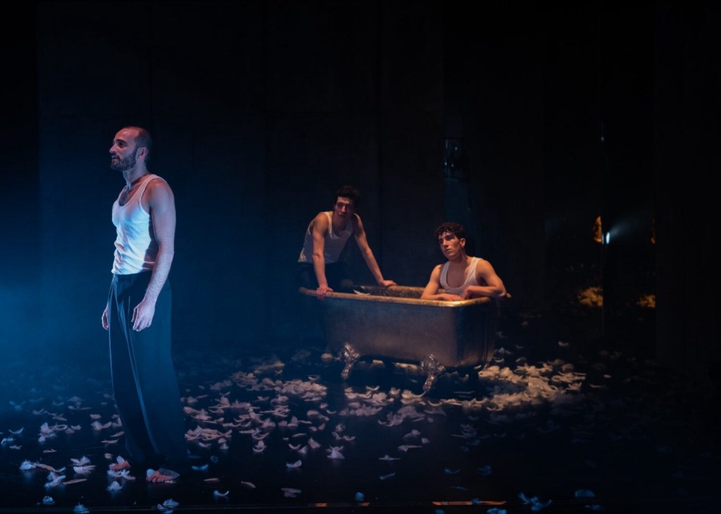 Un recorrido desde los deseos y secretos más oscuros o íntimos de la infancia hasta la autoexploración, el conocerse y retarse a unx mismx, el silencio, la verdad, los gritos, la dualidad entre la normalidad o la excentricidad, los sueños, el deseo, el amor, la pasión… con unos ángeles que podrán llevarnos al infierno o ser testigo de nuestros pecados, una bañera donde puede sumergirse todo miedo, cuerdas y ataduras que por fin explotan, una ciudad que arde en busca del justo… un cóctel muy explosivo donde también habrá varios giros de guion inesperados, una aparición estelar que también marca la obra con su presencia y hasta música y banda sonora. Destacar la química de Jon Muñoz, León Molina y Julio Rojas, la coordinación y las coreografías de la obra, que logren transportarnos a otra dimensión y a otra época o universo paralelo sin poder definirse claramente. Todo ello con la dirección de Aarón Lobato y dirección de Julio Rojas.